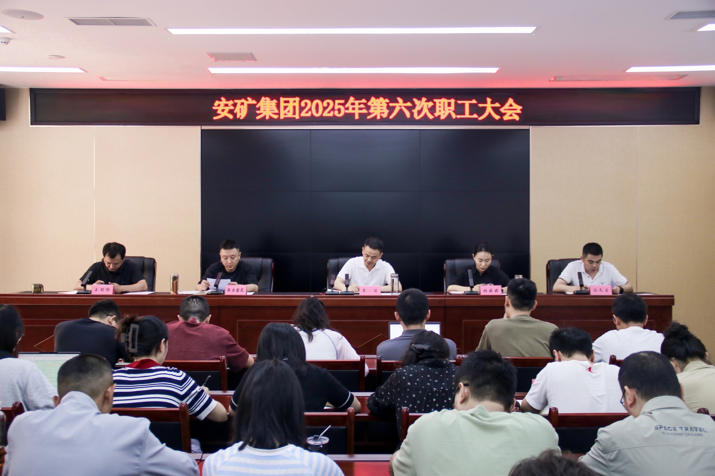9月5日,安礦集團(tuán)召開2025年第六次職工大會,集中傳達(dá)學(xué)習(xí)習(xí)近平總書記關(guān)于防汛救災(zāi)工作的重要指示精神,以及省委十二屆七次全會、市委八屆十次全會、區(qū)委三屆九次全會精神。黨支部書記、董事長袁波出席會議并講話,黨支部委員、總經(jīng)理、工會主席楊婷婷主持會議。