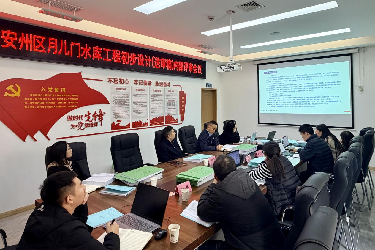 11月10日,集團(tuán)召開綿陽市安州區(qū)月兒門水庫工程初步設(shè)計(jì)(送審稿)內(nèi)部評(píng)審會(huì)議。集團(tuán)董事長袁波、總經(jīng)理?xiàng)铈面?,市水利?guī)劃設(shè)計(jì)院、區(qū)水利局、雎水鎮(zhèn)政府相關(guān)代表及評(píng)審專家參加。(素材來源:項(xiàng)目安環(huán)中心 張瑞桃)